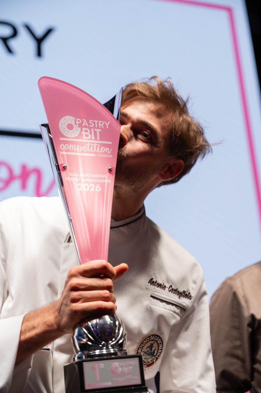 Il titolo di Dallagiovanna Pastry Ambassador 2026–2027 è stato conquistato da Antonio Costagliola, giovane pasticcere originario di Bacoli (Napoli), che si è distinto nella complessa prova del panettone con impasto al cioccolato, da realizzare utilizzando lievito madre vivo e senza creme siringate.