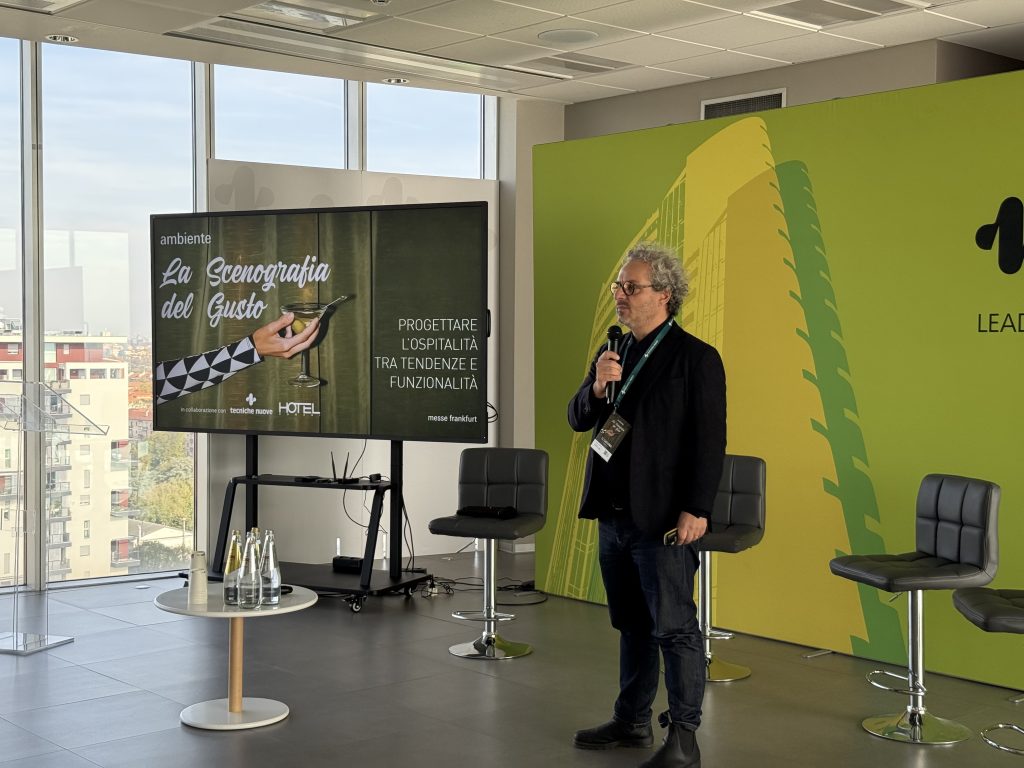 “La scenografia del gusto: progettare l’ospitalita tra tendenze e funzionalità“, organizzato da Hotel Domani e Messe Frankfurt, è stato l’occasione per confrontarsi su uno degli aspetti più strategici del mondo dell’ospitalità e un passo del percorso verso Ambiente, la fiera dei beni di consumo con un forte focus sull’hospitality che si terrà a Francoforte il prossimo febbraio.