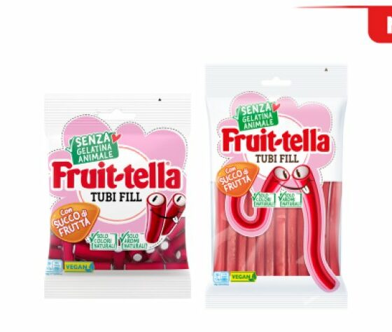 Fruittella amplia la gamma con Tubi Fill, caramelle gommose vegane al gusto fragola
